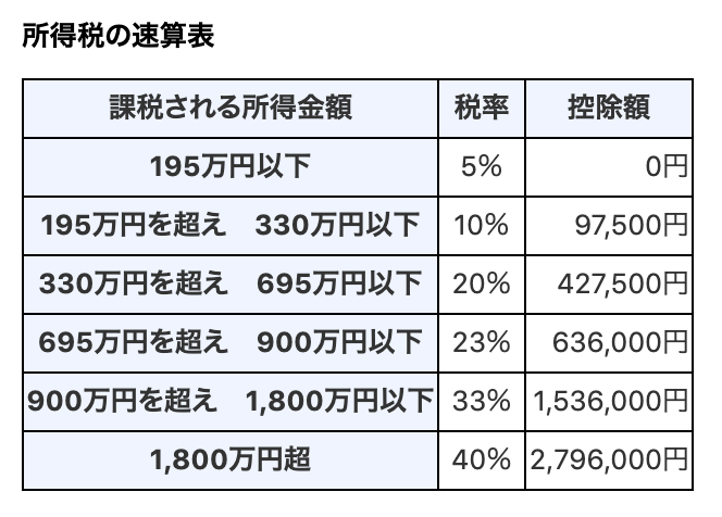 所得税率は課税所得(年収ではありません)で変わります。